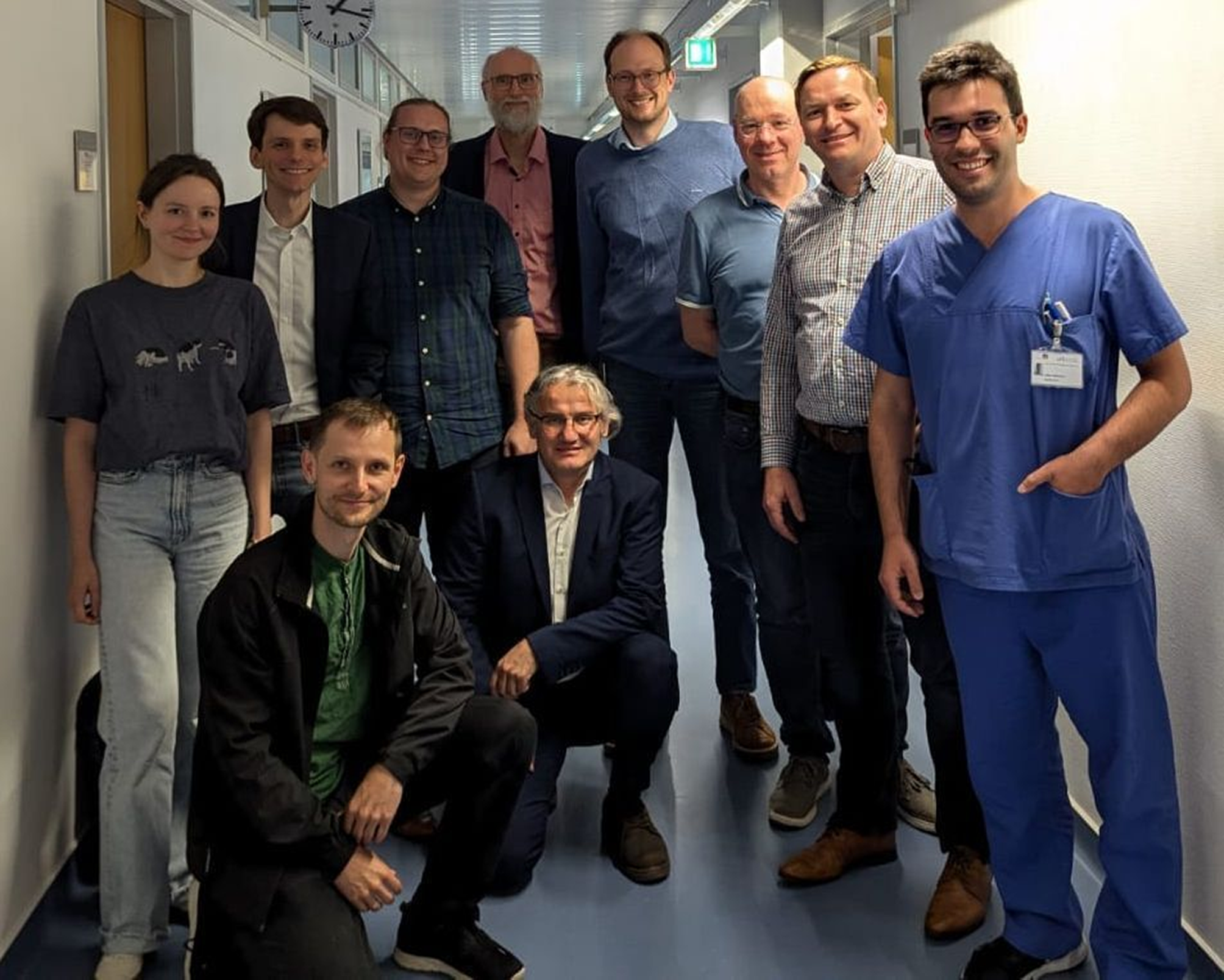 Foto: (v. l.): Anna Jansen, David Lähner, Markus Wellmann, Kristoffer Waldow, Prof. Dr. Arnulph Fuhrmann, Dr. Turhan Civelek, Prof. Dr. Björn Krüger, Dr. Jérôme Perret, PD Dr. Kristian Welle, Julian Marques. | Copyright: Universitätsklinikum Bonn (UKB)/PD Dr. Welle | Download